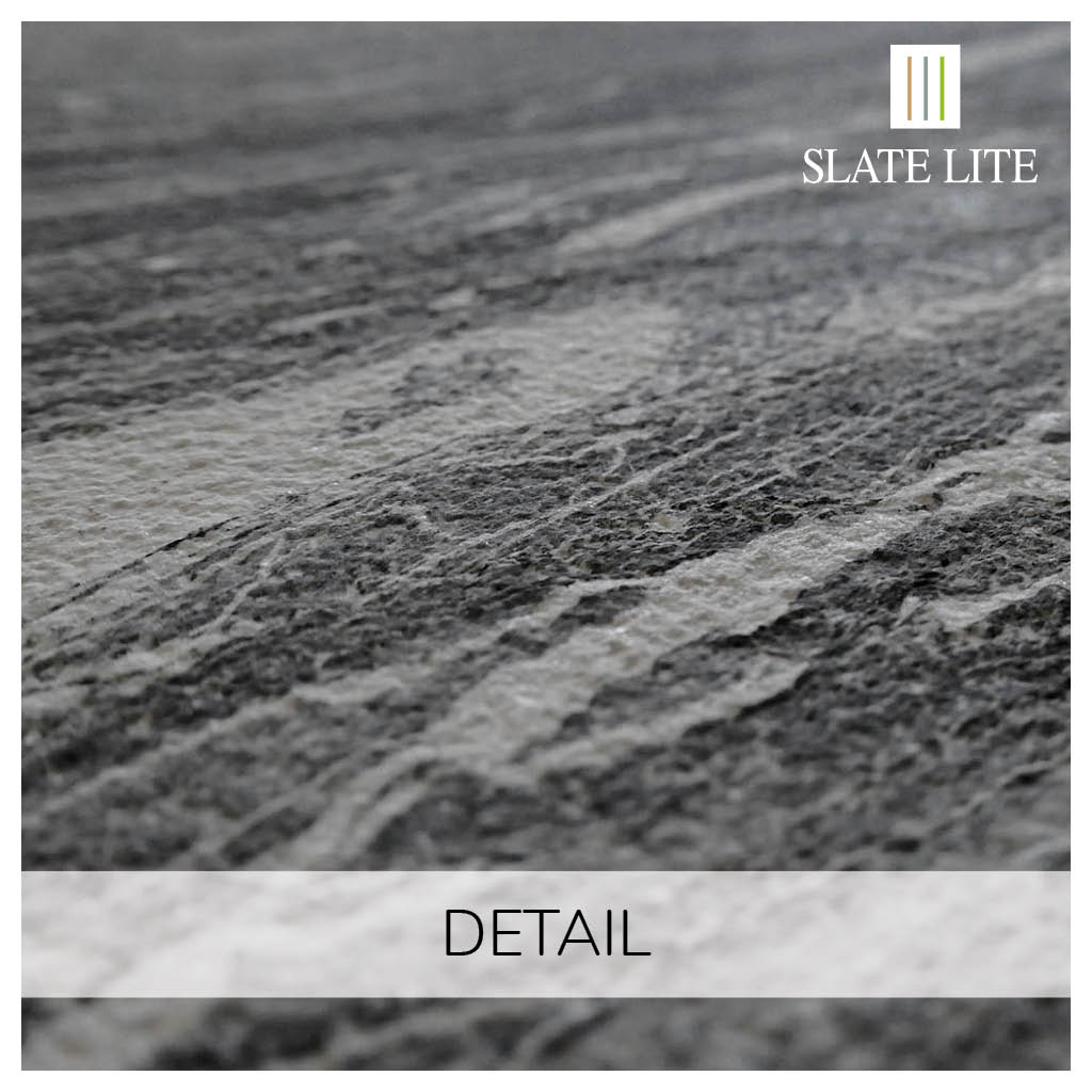 Slate Lite wird aus Naturstein hergestellt. Abweichungen in Farbe und Muster sowie Quarzadern und natürliche Steinspaltungen sind kein Nachteil, sondern ein charakteristisches Merkmal der Natur.